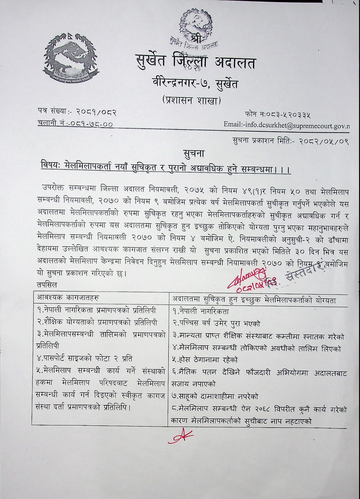 मेलमिलापकर्ता नयाँ सुचिकृत र पुरानो अधावधीक गर्ने सम्बन्धी सूचना !!!