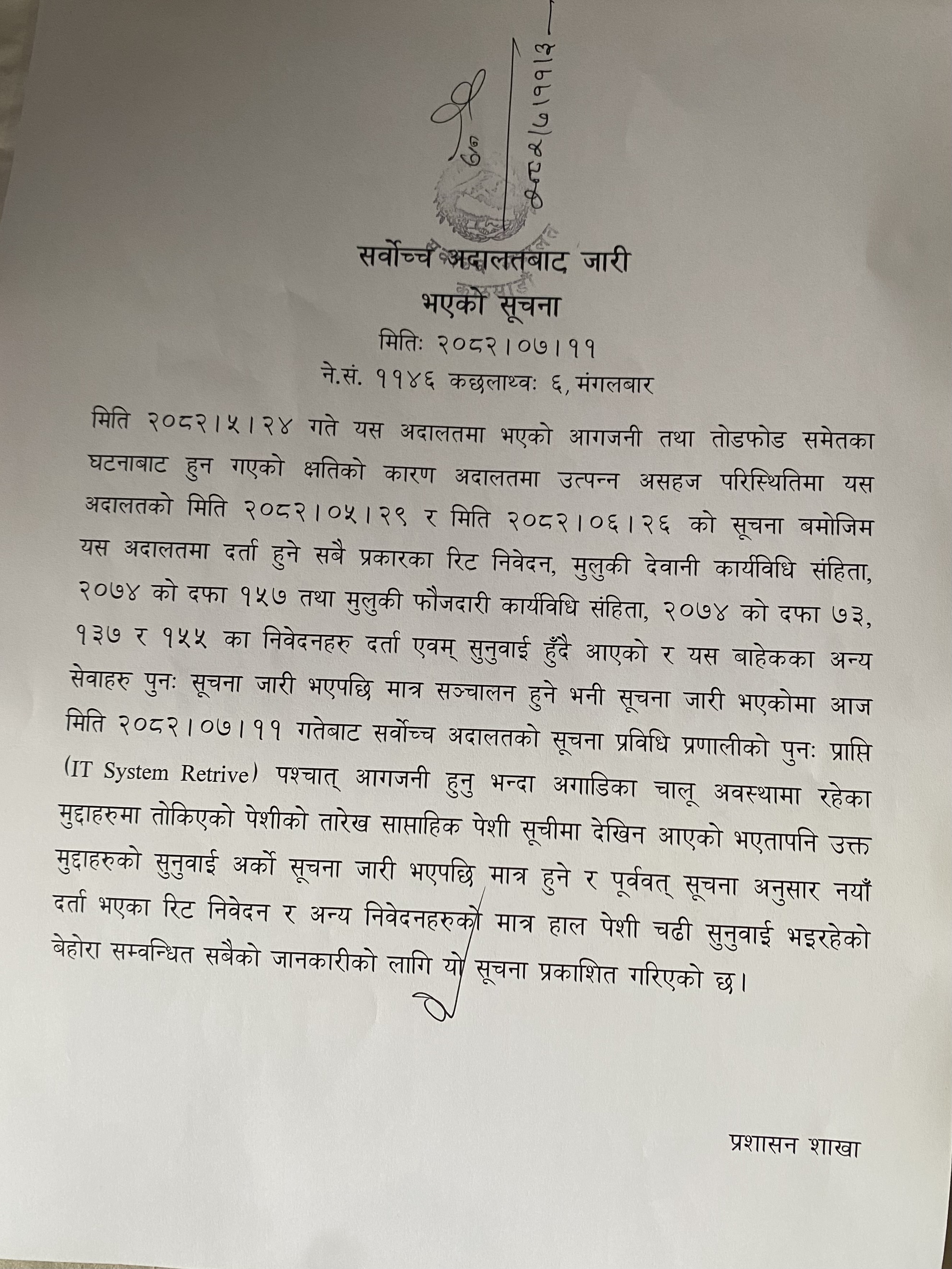 - सर्वोच्च अदालतको मिति २०८२।०७।११ को सुचना ।